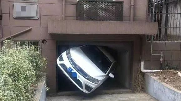 ?倒车的网 快戳 1月4日 南京交警五大队民警接到报警 当事人在小区内部倒车时 因操作失误 一脚油门把车卡在了 非机动车库口